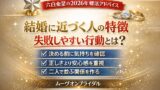 👉 2026年は運気が良くても結婚できない?婚活が止まる人の共通点と抜け出し方