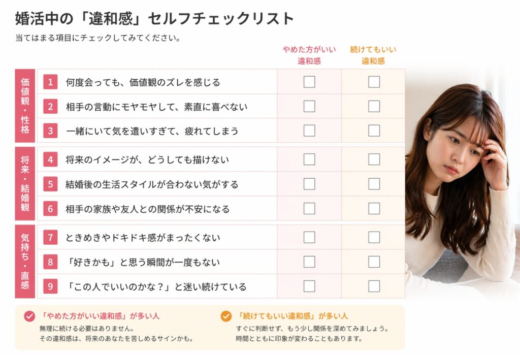 婚活では「違和感がある=やめるべき」と思い込みやすいのですが、実際はそう単純ではありません。